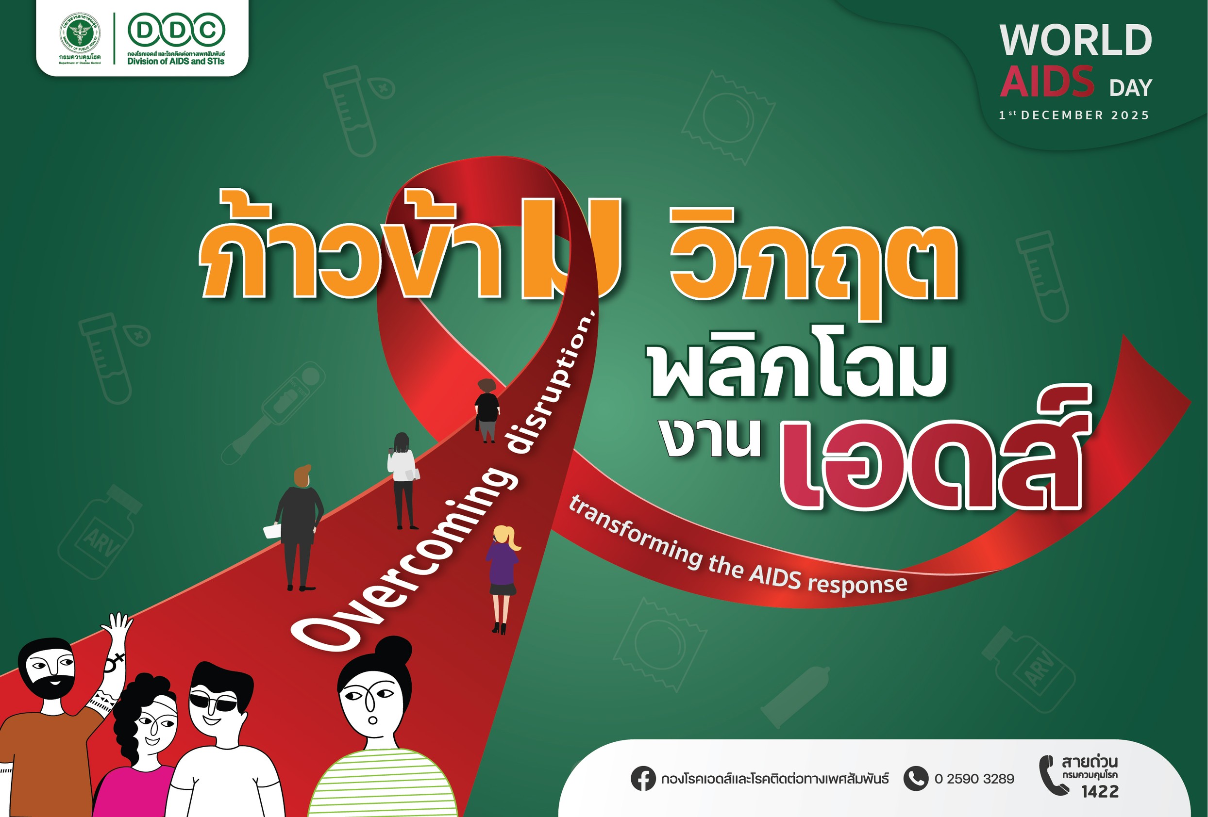 1 ธันวาคม ‘ วันเอดส์โลก ’( World AIDS Day ) แนวคิดการรณรงค์ คือ “ Overcoming disruption,transforming the AIDS response : ก้าวข้ามวิกฤต พลิกโฉมงานเอดส์ ”
